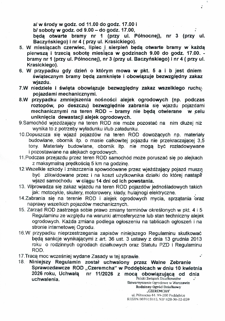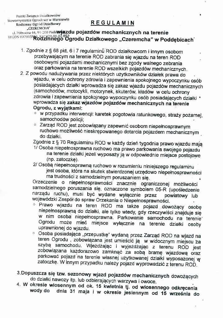 • Regulamin wjazdu pojazdów